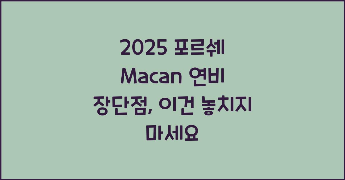 2025 포르쉐 Macan 연비 장단점에 대한 이야기를 시작해 보겠습니다. 이 차는 포르쉐의 SUV 라인업 중에서도 특히 인기를 끌고 있는 모델로, 뛰어난 디자인과 성능을 자랑합니다. 그러나 연비는 소비자에게 인해 무시할 수 없는 요소로, 연비에서의 장단점은 차의 매력을 한층 더 강화하거나 감소시킬 수 있습니다. 따라서 2025 포르쉐 Macan의 연비 장단점은 소비자가 꼭 알아야 할 핵심 요소입니다. 이 글을 통해 구체적으로 알아볼까요? Macan의 연비는 어떤 장점을 지니고 있으며, 어떤 단점이 있는지 함께 살펴보겠습니다.